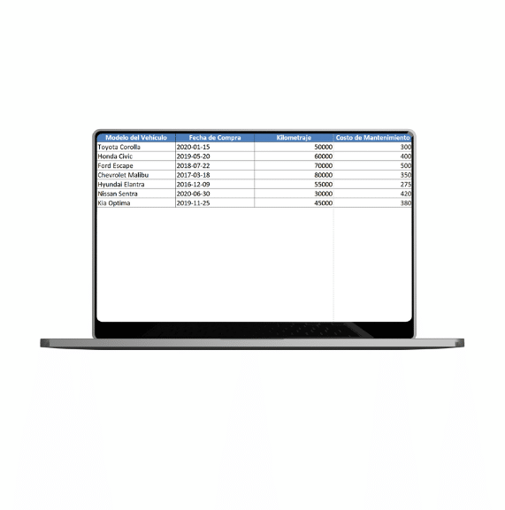 - En la primera columna, escribe el nombre de cada componente del vehículo que deseas revisar. Por ejemplo: neumáticos, luces, frenos, etc.