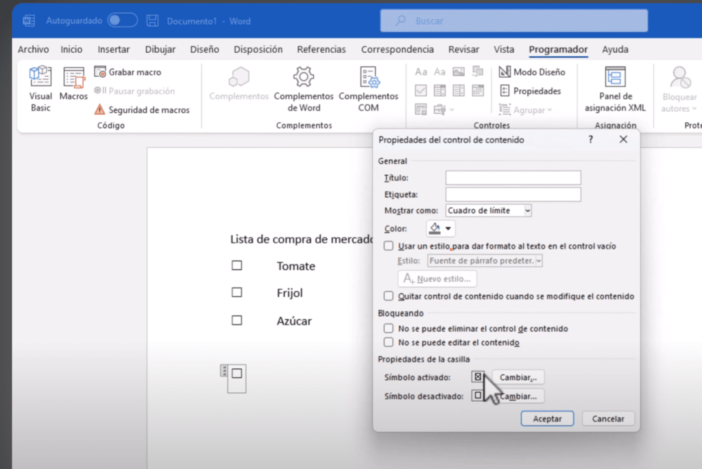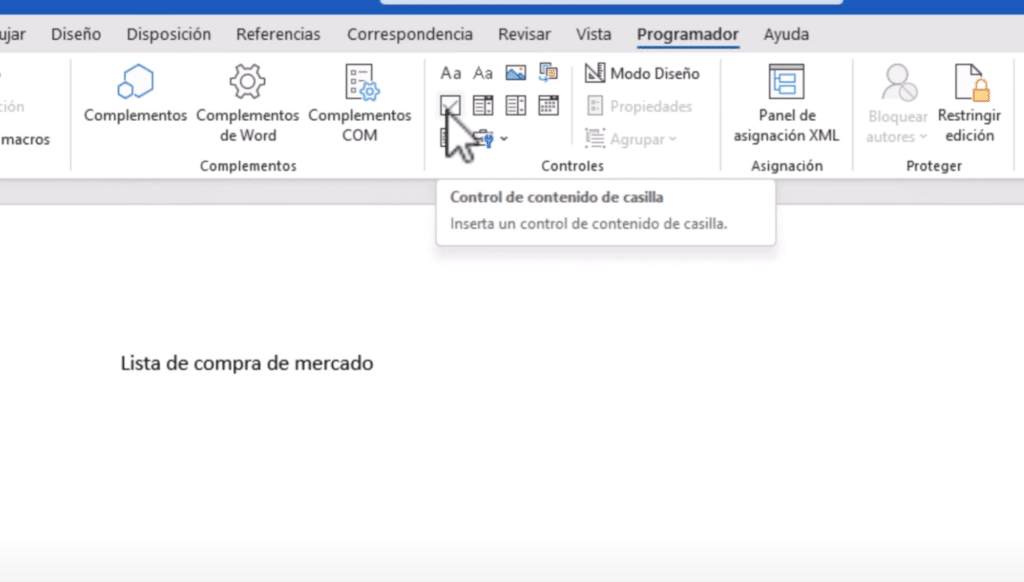 ¡Listo! Ahora ya tenemos activada la pestaña de Programador. A continuación, vamos a crear una checklist rápida, por ejemplo, una lista de compras para el supermercado.
